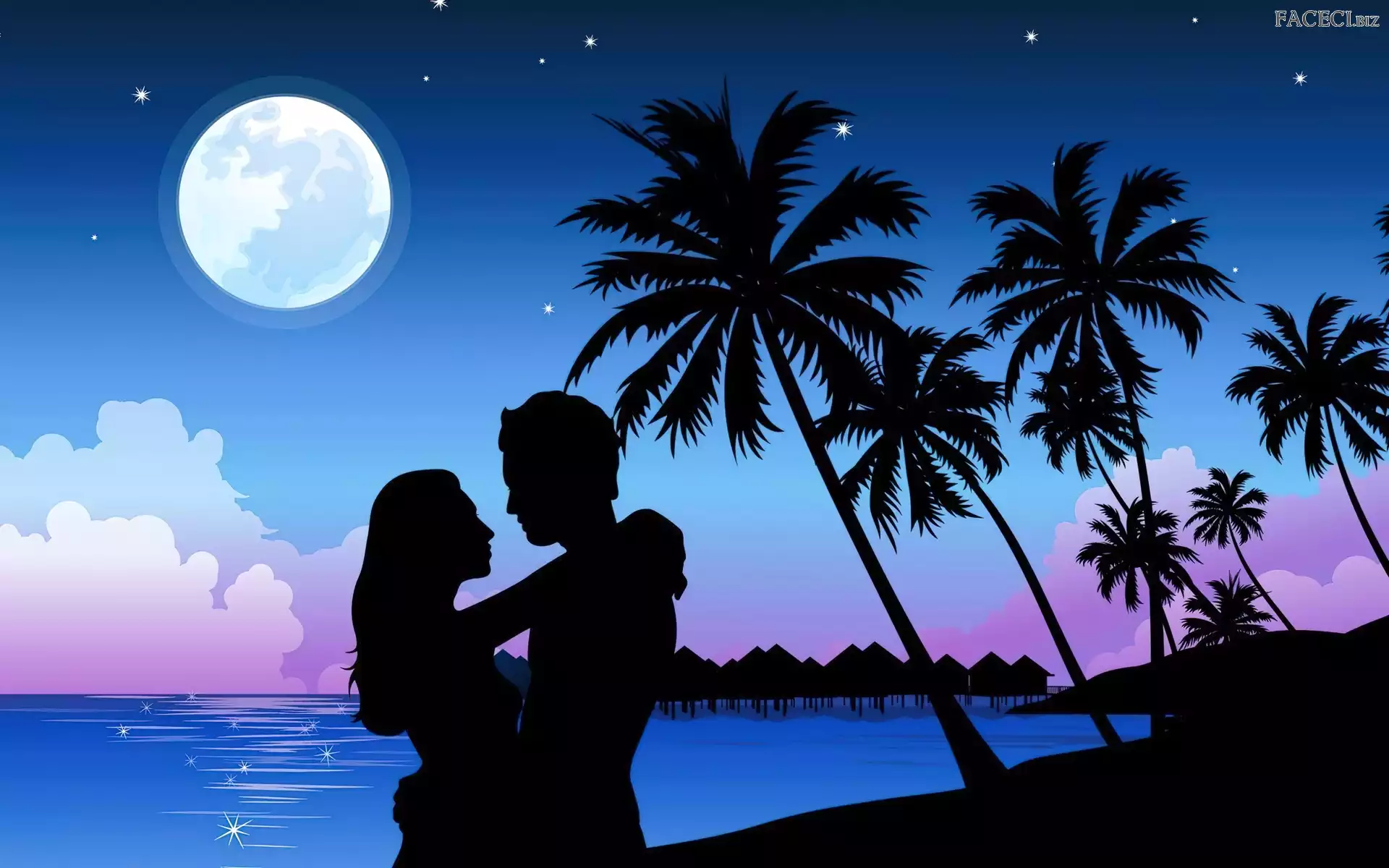 Zakochani, Plaża, Księżyc, Noc, Morze - faceci.biz